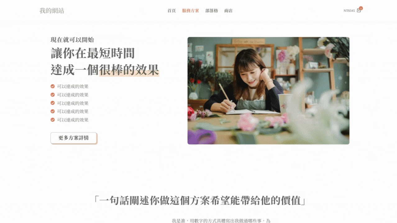 整體設計好像沒什麼問題,但總覺得缺了些什麼?沒有品牌感也沒有讓人想多看一眼的理由。訪客進來幾秒就跳出,不知道該怎麼調整頁面的設計架構。